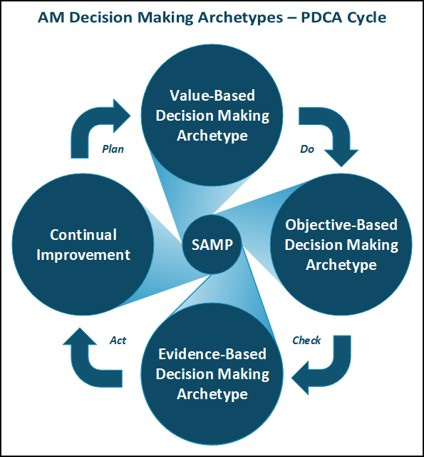 This diagram shows a PDCA Cycle that relates asset management decision-making archetypes, detailed as follows: